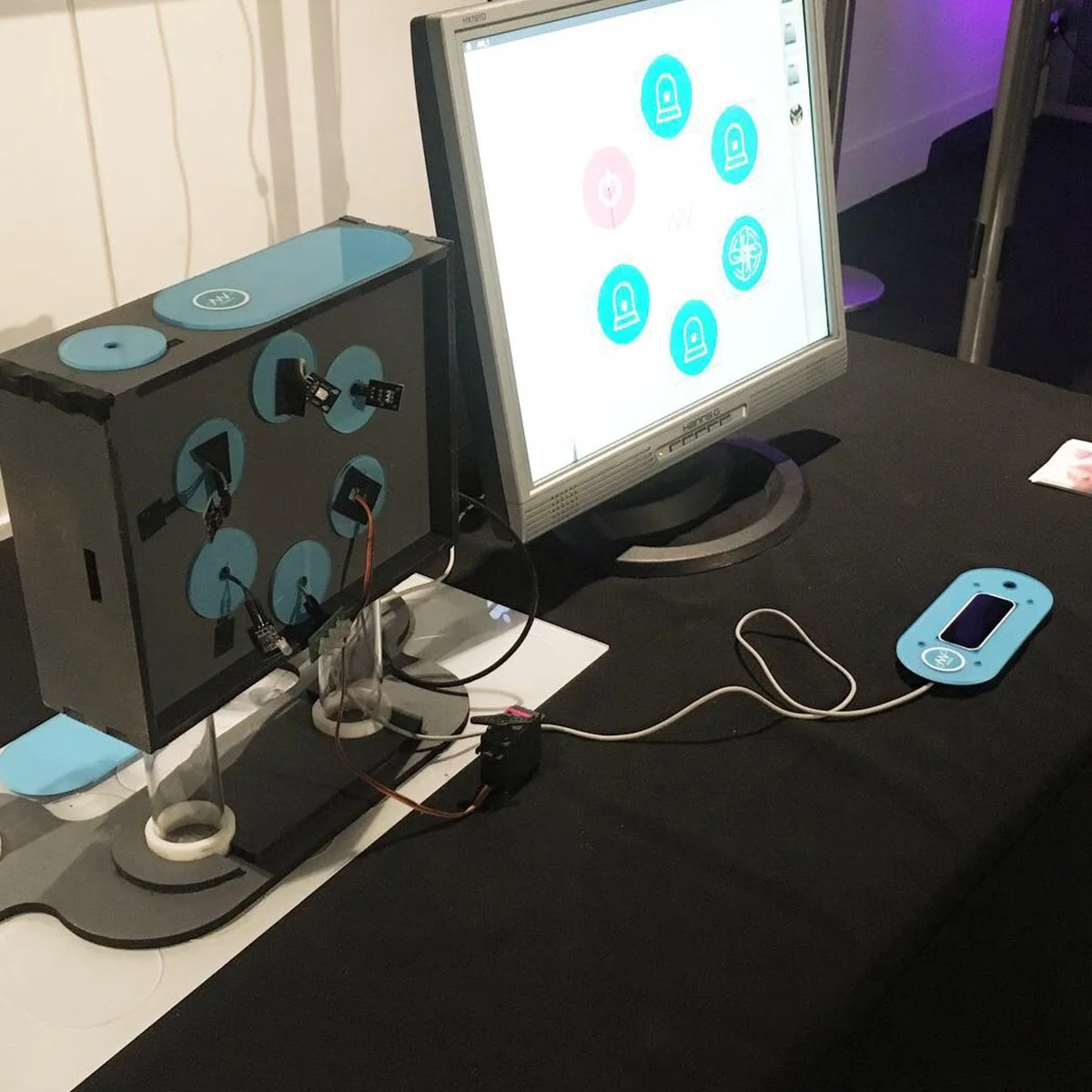 The product design of AirWire had to bring together two kinds of aesthetics: a fun, playful one that people find accessible and likeable, and also a scientific, instrument like aesthetic which makes it feel like a technical apparatus.