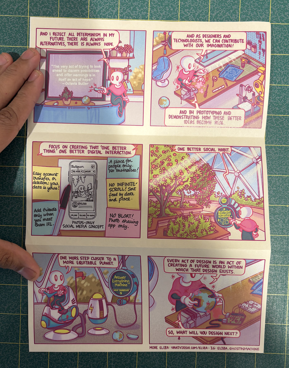 ‘Why Speculate?’ is a visual essay, that asserts the value of speculative design within the design process of new products and services. After having explored design fiction artefacts like instruction manuals and catalogues in alternative worlds, speculative fiction stories, and critical design cartoons in the previous books; Visual Essays is yet another format that Eliza allows me to explore.